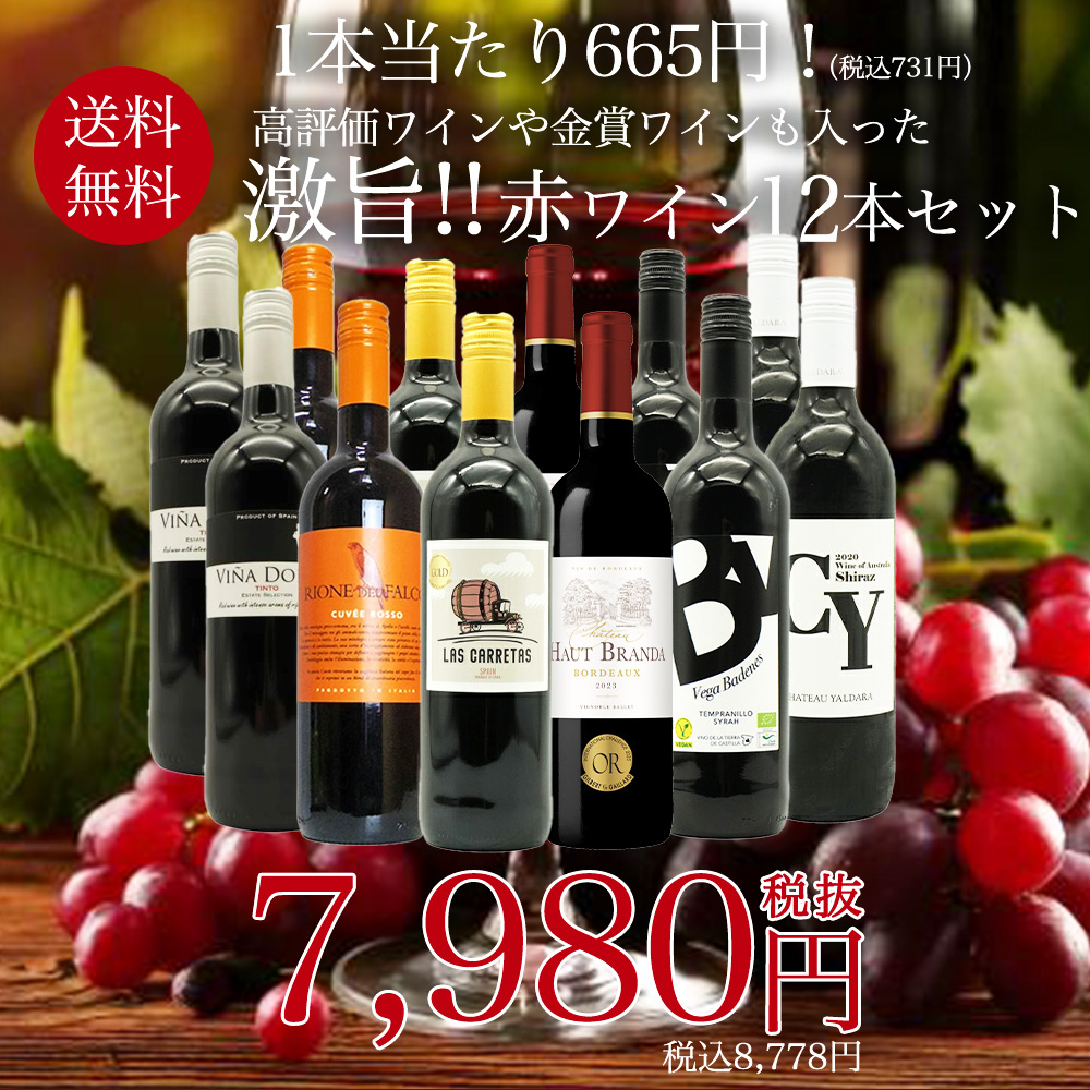 【商品説明】1本当たり665円!高評価ワインや金賞ワインも入った激旨!!赤ワイン12本セット