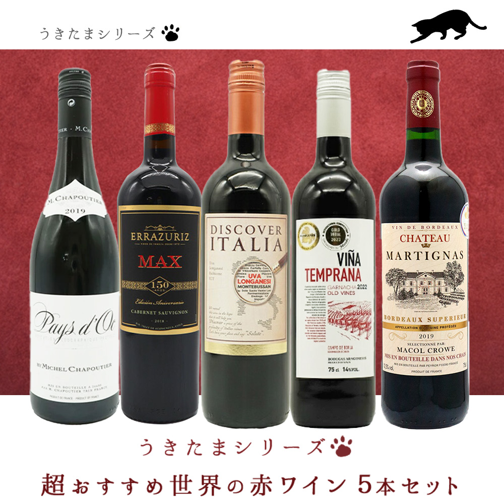 【送料無料】うきたまシリーズ 超おすすめ世界の赤ワイン5本セット (追加7本まで同梱可 送料無料) ワインセット