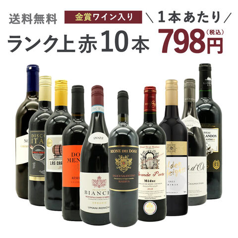 【送料無料】ワインセット ランク上の赤ワイン大集結!1本あたりたったの798円(税込)!玉手箱厳選赤ワイン10本セット(追加2本同梱可) ワインセット