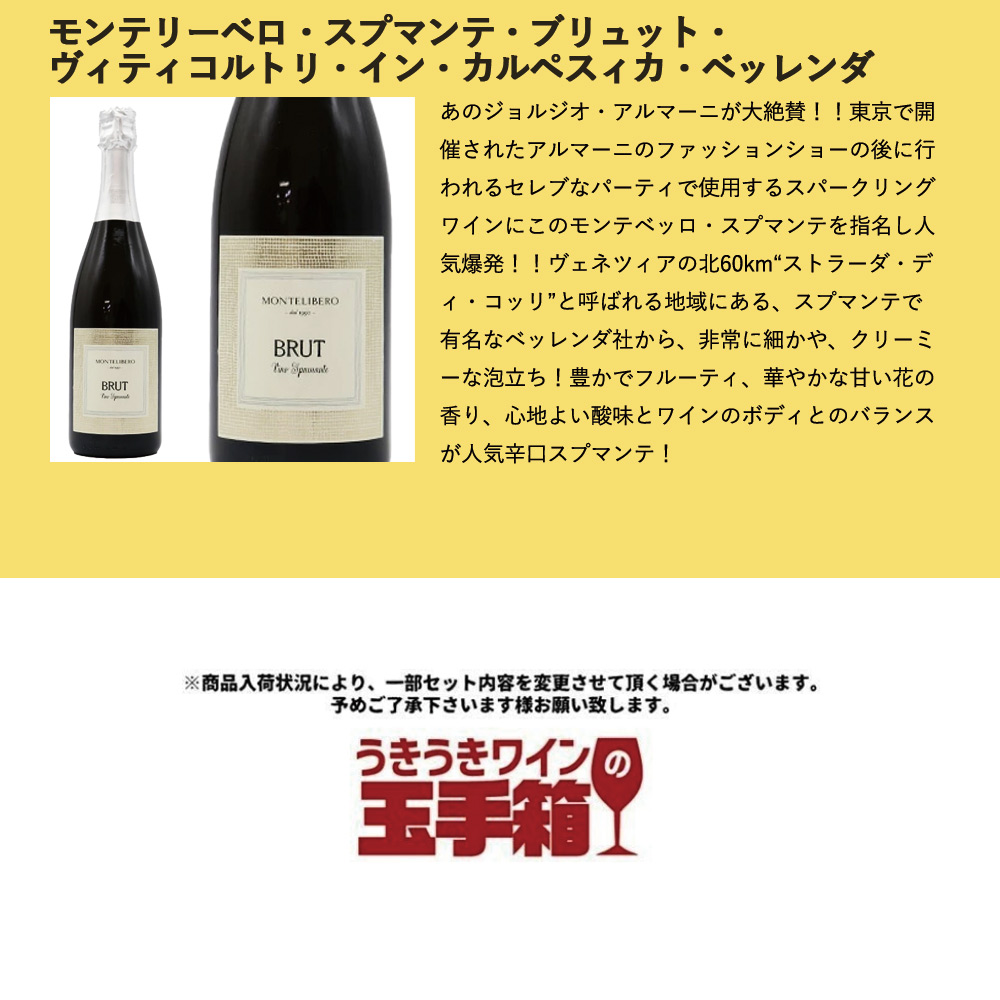 【商品説明】新型コロナウイルスに罹患された方々、感染拡大により生活に影響を受けられている地域の皆様にお見舞い申し上げます。この事態が今以上に拡大せず、一日も早く収束することを願っております。大変な状況の中ではございますが、美味しいワインを通して、少しでもホッとする時間、うきうきして頂ける時間を作って頂きたい!との玉手箱スタッフ一同の想いから、今回、家飲み応援!業務店様応援!と致しまして、赤字覚悟の応援スペシャルセットをご販売!セット内容は、赤・白・泡の飲み比べセット! 東京で開催されたアルマーニのファッションショーの後に行われるセレブなパーティで使用するスパークリングワインにこのモンテベッロ・スプマンテを指名し人気爆発したワイン!スプマンテで有名なベッレンダ社からモンテリーベロ・スプマンテ・ブリュットが1本! ボルドー産お手頃金賞!ジルベールガイヤール誌25年金賞受賞!ッドカラントとベリーのしっかりとした香りを放ちます!滑らかで魅惑的なこのフルーティーなワインは、タンニンの柔らかさが際立つシャトー・オー・ブランダが1本! 地中海生まれのコスパ抜群のすっきり辛口白ワイン!“ラングドックのベェネツィア”と呼ばれるセット(Sete)の近くで古くから栽培される“ピクプール”という土着品種で造られる究極辛口白ワイン!ドルメン・ラ・ピエール・プランテが1本!の全て辛口!赤・白・泡の飲み比べ3本セット! 当店販売価格合計5,126円(税込)+送料598円=5,724円が驚愕3,300円(税込・送料無料)でご案内!送料を除くと実質、2,702円(税込)となりますので、1本当り1000円(税抜)で味わえます!完全数量限定となりますので皆様、お急ぎください!もちろん残り送料無料のまま9本まで同梱可能!