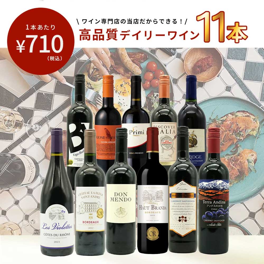 【送料無料】ワインセット 1本 たったの710円(税込) 5大銘醸地入り 世界 選りすぐり 辛口 赤ワイン 11本 セット