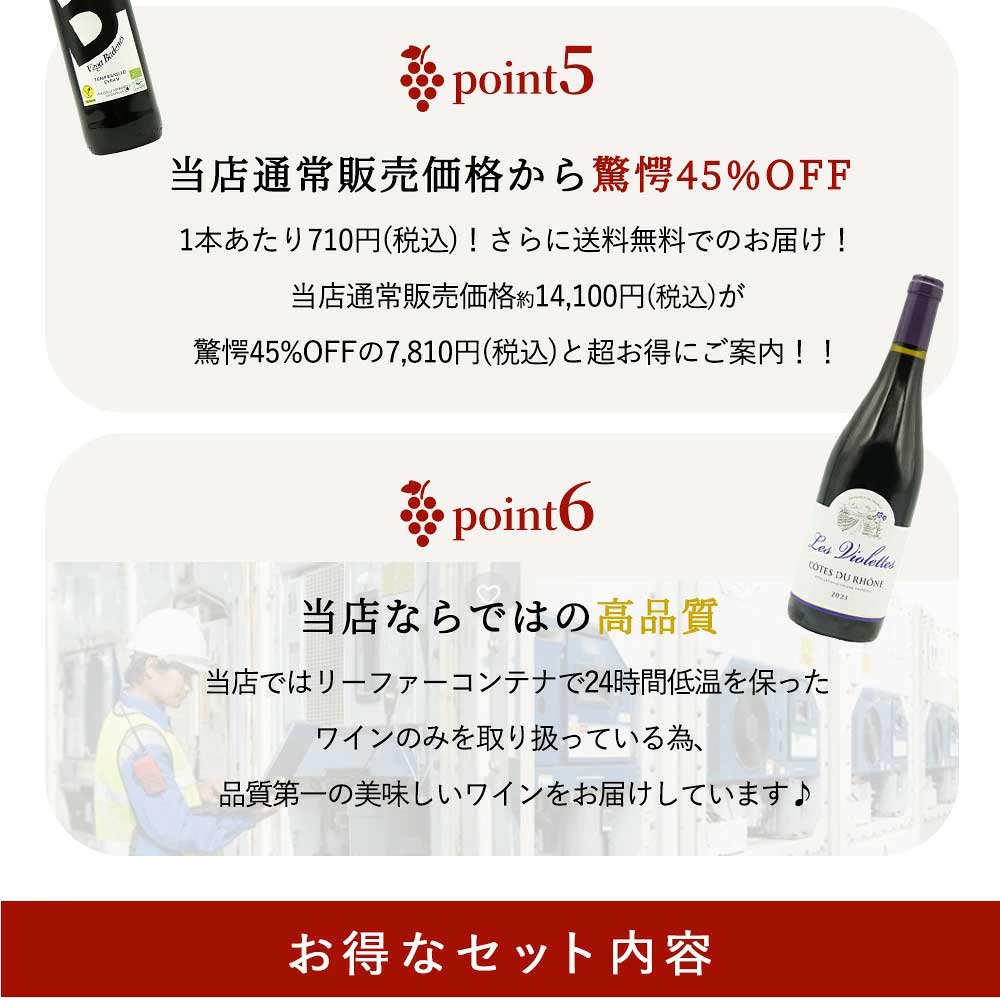 【商品名】【特別 送料無料】1本たったの710円(税込) 5大銘醸地入り 世界選りすぐり辛口赤ワイン11本セット 金賞 飲み比べ ワイン ワインセット フランス ボルドー イタリア スペイン カリフォルニア【商品説明】ショップ・オブ・ザ・イヤー10年連続受賞のワイン専門店うきうきワインの玉手箱だからできる、高品質!デイリーに楽しめるお手頃ワインセットを新発売!玉手箱のソムリエをはじめスタッフ一同で1本、1本テイスティングし、厳選セレクト!世界の6大銘醸産地フランス、ボルドー、イタリア、スペイン、カリフォルニアの5大銘醸産地からのワインを飲み比べ!色々な国の品種の飲み比べが楽しめます!しかも各国のワインコンクールで厳しい審査をくぐり抜けた金賞受賞ワイン入り!気になるセットの中身は、傑作ボルドーの金賞受賞酒に、前菜からメインまでオールマイティーに合わせられる当店通常販売価格1,760円の最強南仏フルボディ赤ワイン!さらに金賞受賞の極旨スパニッシュに、この価格帯でびっくりの極旨DOC規格のモンテプルチアーノ・アブルッツオ、カリフォルニア・カベルネまでセットにしちゃいます!もちろんこのセットでカベルネ・ソーヴィニヨン、カリニャン、テンプラニーリョ、モンテプルチアーノ等の品種の特徴も分かります!素晴らしい辛口赤ワインが勢揃いで1本たったの710円(税込)!