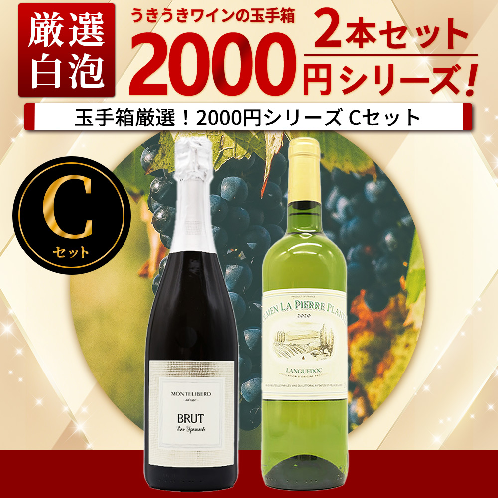 うきうきワインの玉手箱厳選!お値段以上の価値お約束!スタッフ厳選2000円シリーズワインセット(白1本、泡1本)(Cセット) ワイン ワインセット