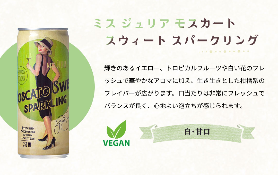 ミス ジュリア ファンティーニ スパークリング モスカート スウィート 24本セット ヴィーガン認証 缶ワイン 250ml 送料無料 同梱不可 直送品