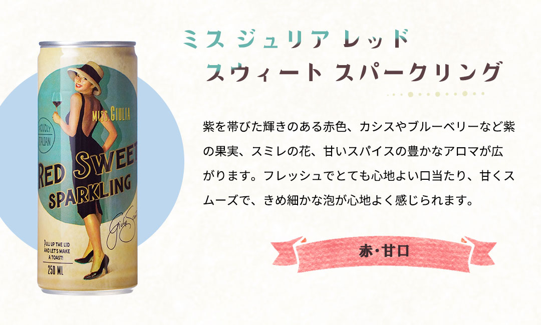 ミス ジュリア ファンティーニ スパークリング レッド スウィート 24本セット ヴィーガン認証 赤 缶ワイン 250ml 送料無料 同梱不可 直送品