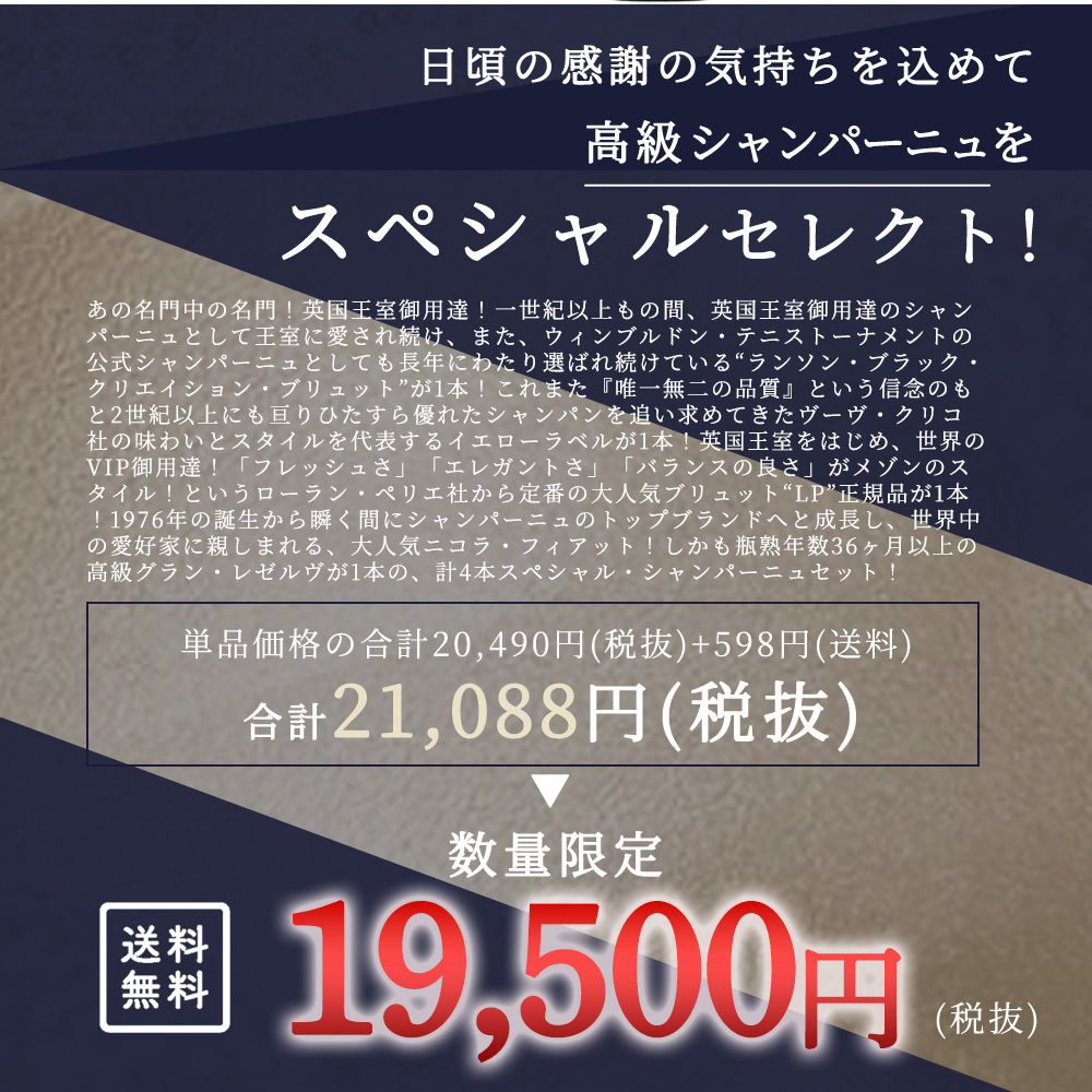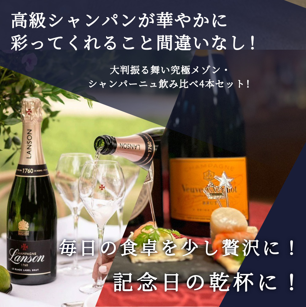 【送料無料】うきうき高級辛口有名メゾン シャンパーニュ究極飲み比べ豪華スペシャル4本セット