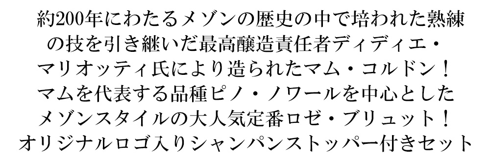 【正規品 箱入 シャンパンストッパー付き】マム グラン コルドン ロゼ オリジナルロゴ入りシャンパンストッパー付き シャンパーニュ ブリュット