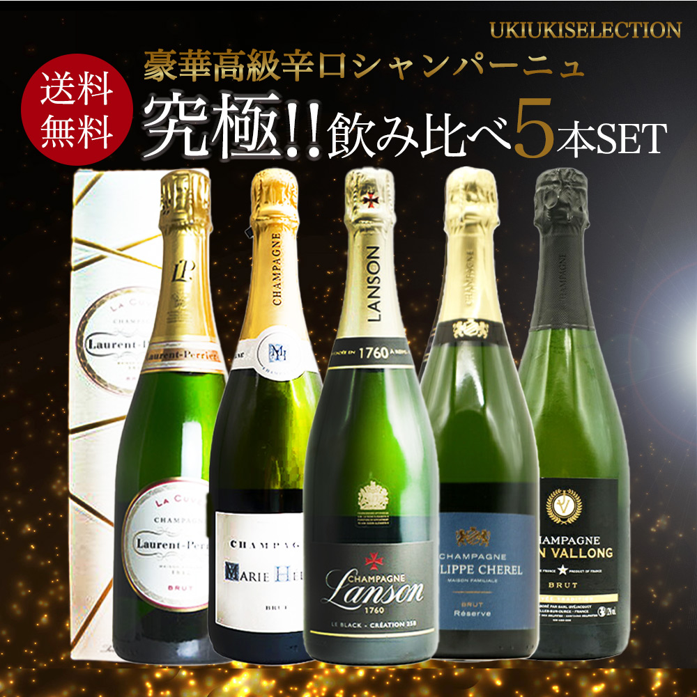 【送料無料】うきうき厳選!高級辛口シャンパーニュ究極飲み比べ豪華スペシャル5本セット