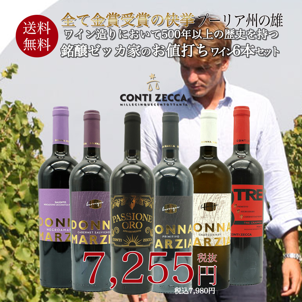 【商品名】【送料無料】全て金賞受賞の快挙!プーリア州の雄“コンティ ゼッカ” スペシャル飲み比べワインセット(赤5本&白1本)