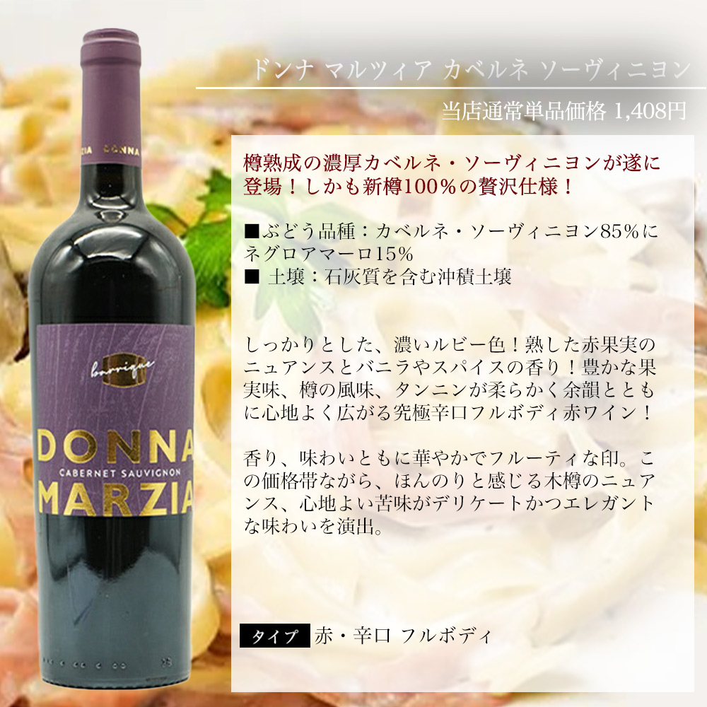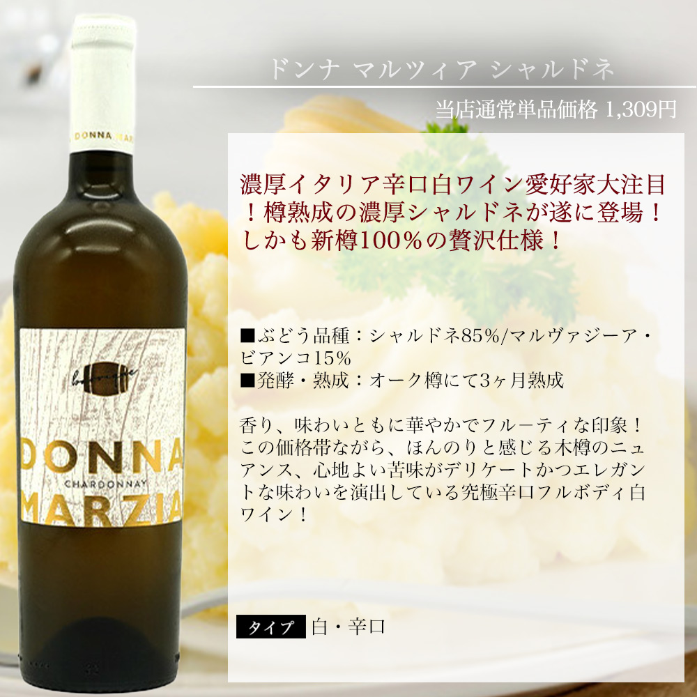 【商品説明】イタリアワイン愛好家大注目!最高コスパワインファン大注目!イタリアワインファンのみならず、日本のワイン愛好家に大人気のコンティ・ゼッカ!全て金賞受賞の快挙!スペシャル飲み比べセットをさらにお買い得価格でご販売!造り手は、南イタリアならではの土着品種の魅力を最大限に生かし、コストパフォーマンスに優れたワインを生み出す、歴史と由緒あるワイナリー!プーリア州サレント半島に昔から侯爵家として門を構え、ワイン造りにおいては500年以上の歴史を持つゼッカ家!現在のワイナリーは現当主の祖父アルチビアテ・ゼッカ氏によって1935年設立、この地ならではの土着品種の個性を最大限にいかしたワイン造りを行っていますが国際品種にも近年積極的に取り組んでいる!広大な自社畑で出来た高品質なブドウは、プーリアでもトップ・クラスと評されるワインを生み出し、多くのファンを魅了!さらにはプーリア州でガンベロ・ロッソ誌でトレ・ビッキエーリを10回獲得した数少ないスターワイナリーとして知られており、イタリア国内に限らず海外でも大注目の大御所生産者コンティ・ゼッカ!ゼッカ家の大人気アイテムの中から皆様にぜひ味わって頂きたいワインを当店ソムリエと輸入元モトックスのスタッフでセレクト!中身はドンナ・マルツィア・シリーズの中でも大人気のオーク樽熟成もののシャルドネ、プリミティーヴォ、カベルネ・ソーヴィニヨンをセレクト!さらにポリフェノール5倍で話題となったネグロアマーロ!造り手が最も得意とする3つの黒ぶどう品種を見事にブレンドして造られた自信作!ネグロアマーロ45%にプリミティーヴォ45%、カベルネ・ソーヴィニヨン10%で造られるトレ・グラッポリ・ロッソ!プーリアの伝統的製法アパッシメントを経て造られるワイナリーの情熱がこもったパッショーネ・オーロ・アパッシメントの赤5本、白1本の計6本飲み比べ!全て辛口!プーリア州の雄“コンティ・ゼッカ”・スペシャル飲み比べワインセット!通常単品購入よりお得にご販売!しかも送料無料でお届け!銘醸コンティ・ゼッカの世界をお楽しみ下さい!