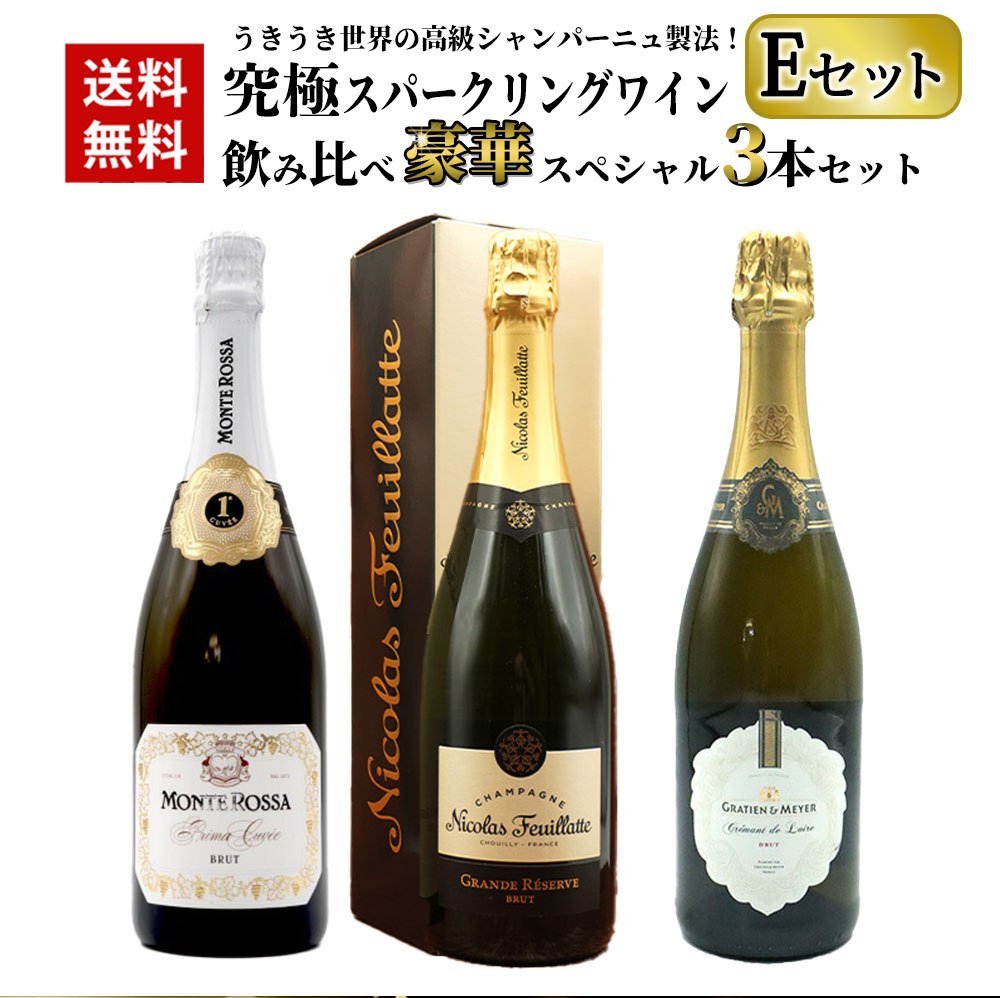 【送料無料】うきうき世界の高級シャンパーニュ製法!究極スパークリングワイン飲み比べ豪華スペシャル3本セット Eセット