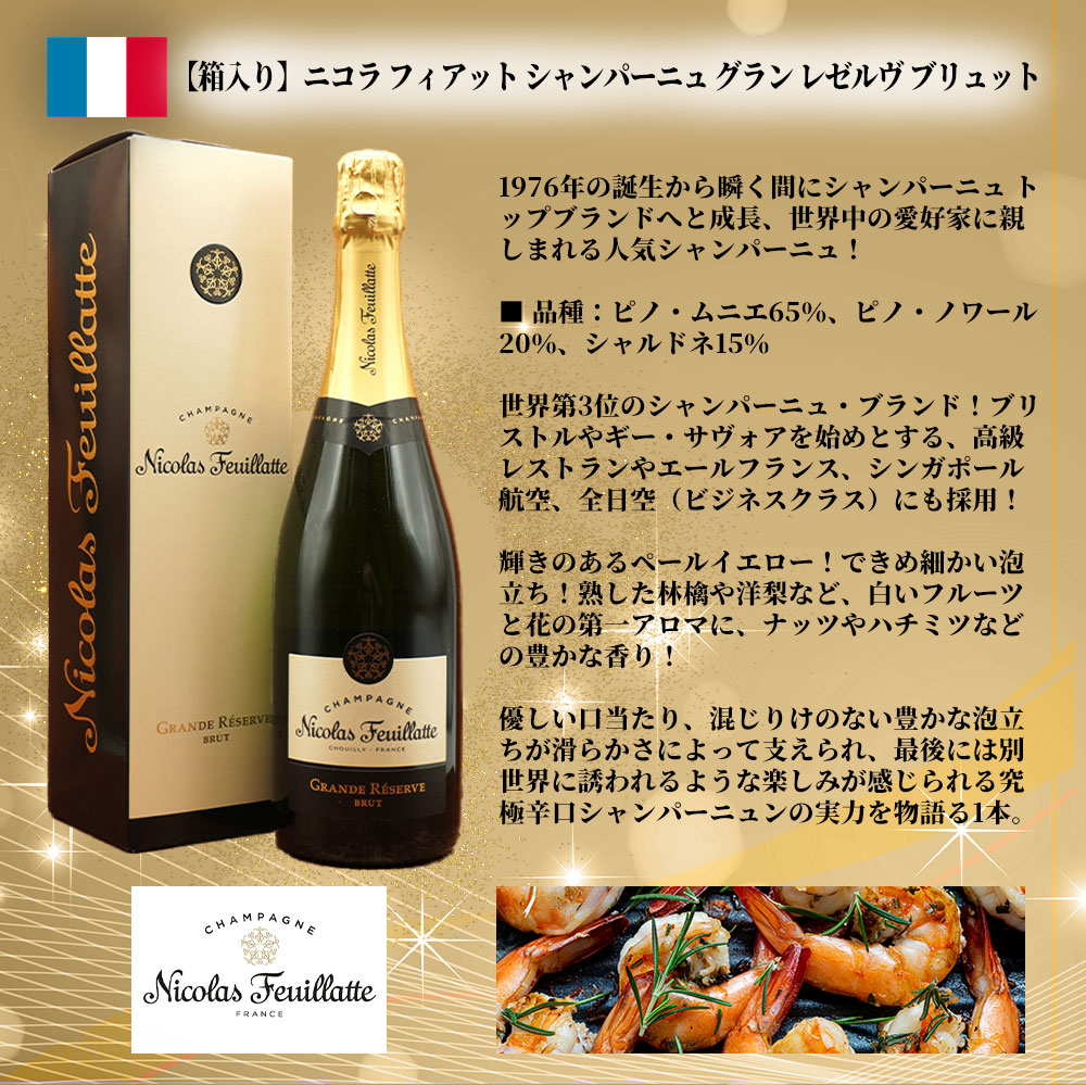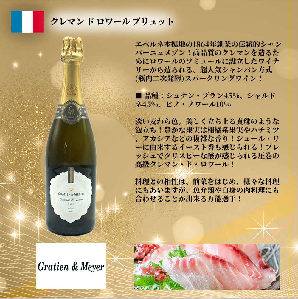 【商品説明】超スペシャル販売!うきうき世界の高級シャンパーニュ製法スパークリングワイン飲み比べセット!毎日の食卓を少し贅沢に!パーティーで!記念日の乾杯に!日頃の感謝の気持ちを込めて高級シャンパーニュを含む全てシャンパーニュ製法(瓶内二次発酵)のランク上のスペシャル・スパークリングワインを赤字覚悟でセレクト!高級シャンパーニュ製法スパークリングワイン飲み比べスペシャル3本セット! シャンパーニュ、イタリア、オーストラリア全てシャンパーニュ製法(瓶内二次発酵)の高級辛口スパークリングワイン!超有名アンリオの看板作品“スーヴェラン”にイタリアの高級スパークリングを代表するフェッラーリ、オーストラリアの銘醸タルターニの本格派スパークリングが3本入って驚愕10,978円(税込)! 200年以上の歴史を持ち、世界中から賞賛される名門中の名門のシャンパーニュ・メゾン!フランスのワイン専門誌「R.V.F」誌のシャンパーニュ特集でなんと!あのルイ・ロデレールを押さえてこのブリュット・スーヴェランが堂々の一位を獲得!したこともあるアンリオ社自信の「最高」という名の本格派シャンパーニュが1本! イタリア泡ファンで知らぬ人はいないといっても過言ではないイタリア・スプマンテの頂点に君臨するフェッラーリの伝統的なスプマンテ・ブリュット!シャルドネ100%で造られる高級シャンパーニュ匹敵の圧巻の品質を誇るイタリア最高峰スパークリング!「キング・オブ・スプマンテ」“フェッラーリ”が1本! JALサクララウンジでも採用された本格派辛口スパークリングワイン!オーストラリア・ヴィクトリア州のピレニーズ地区とマセドン地区のシャルドネ57%とピノ・ノワール43%だけで造られるシャンパーニュと同じセパージュで、同じメソッド・トラディショナル(シャンパン方式)の高級スパークリングワインが1本の、計3本スペシャル・シャンパーニュ製法スパークリングワインセット! 驚異のびっくりプライス!1本あたり驚愕の3,659円(税込)!で味わえる!しかも送料無料でお届け!当店単品合計販売価格11,320円(税抜)+送料590円=11,910円のところ1,930円引きの驚愕9,980円(税抜)!この3本が華やかに彩ってくれること間違いなし! 大判振る舞い究極辛口スパークリングワイン飲み比べセット!数量限定でご販売!