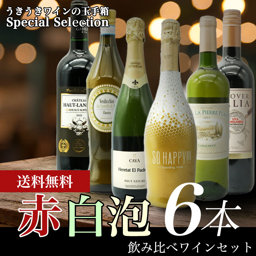 【送料無料】うきうきワインの玉手箱スペシャルセレクション赤 白 泡 6本 飲み比べセット パーティーでも毎日の食卓でも大活躍ワインセット