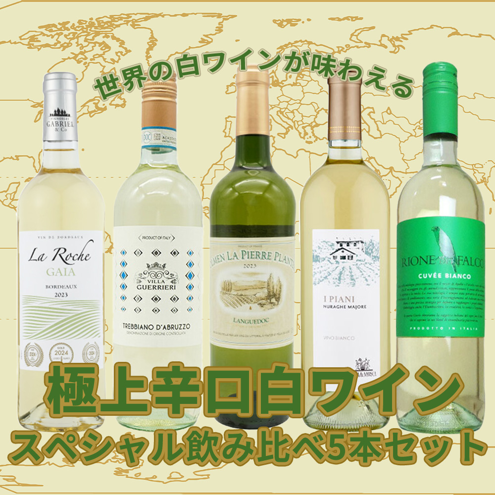 【送料無料】当店厳選!世界の白ワインが味わえる!超極上辛口白ワイン究極スペシャル飲み比べ5本セット