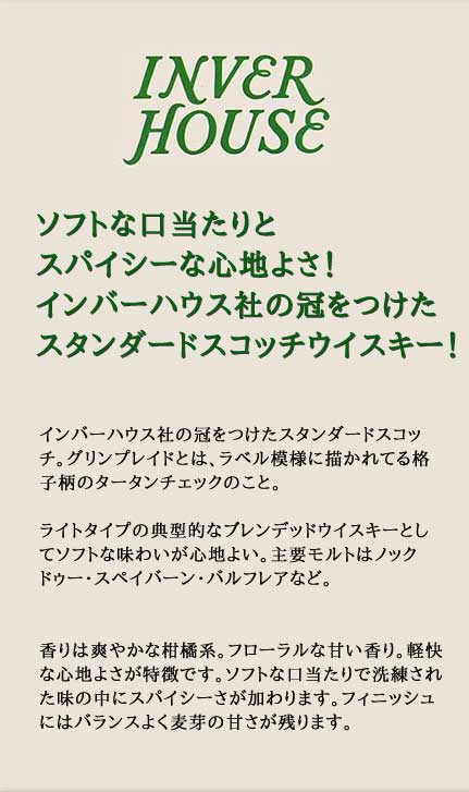 インバーハウス グリーンプライド ブレンデッドスコッチウイスキー 40% 700ml
