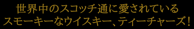 ![]() ティーチャーズ ハイランドクリーム美しい茶褐色。スモーキー。熟したリンゴ、洋梨の香り。味わいは力強いコクとシルクのように優しい風味。豊かな風味がゆっくりと消えていくバランスの良い後味。ティーチャーズのキーモルトには、アードモアが使われています。 |
