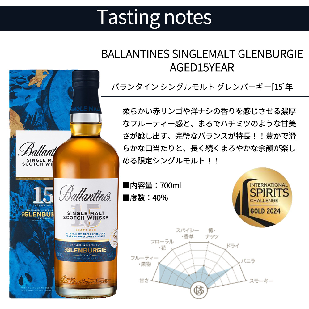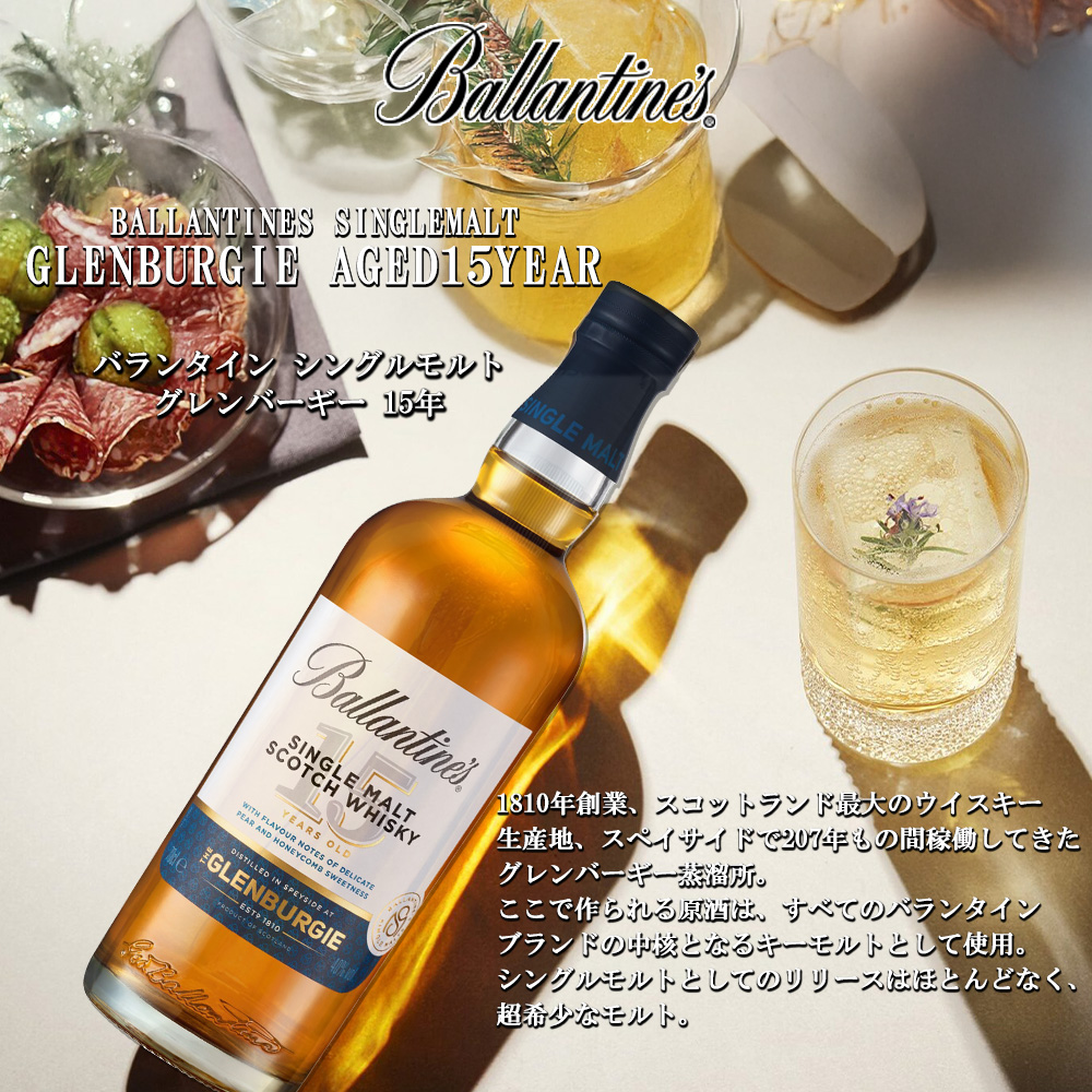 【正規品 箱入】バランタイン シングルモルト グレンバーギー 15 年 シングル モルト スコッチ ウイスキー 700ml 40% BALLANTINES SINGLEMALT GLENBURGIE AGED15YEAR SINGLE MALT