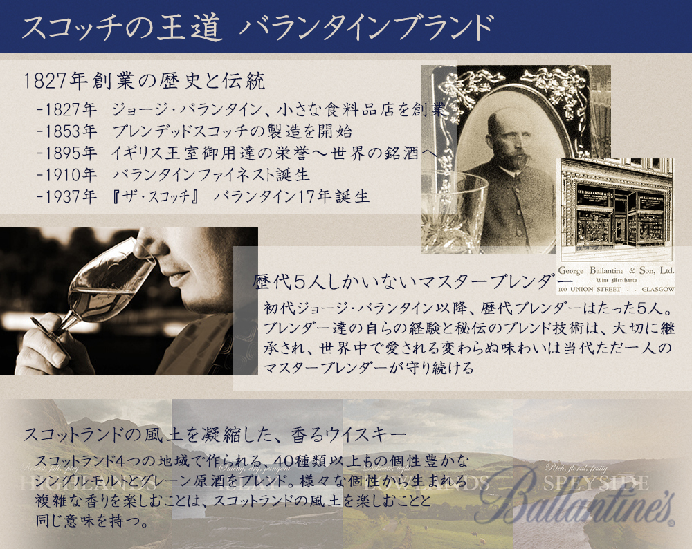 【商品説明】シングルモルト愛好家必見!!ブレンデッドウイスキー愛好家大注目!!スコッチウイスキーの王道!!バランタイン!!のブレンドの魅力を訴求すべく、中核を担うキーモルトをシングルモルトとして限定リリース!! シングルモルトとして最適な品質管理のもと15年熟成させた逸品!!バランタインをブレンドする上で中核を担っているシングルモルト!! バランタインの心臓であり、ブランドの故郷とも呼べる歴史的蒸留所!!グレンバーギー蒸留所!! 1810年創業!!スコットランド最大のウイスキー生産地、スペイサイドで207年もの間稼働してきたグレンバーギー蒸溜所!!ここで作られる原酒は、すべてのバランタインブランドの中核となるキーモルトとして使用!!シングルモルトとしてのリリースはほとんどなく、超希少なモルト!! 柔らかい赤リンゴや洋ナシの香りを感じさせる濃厚なフルーティー感と、まるでハチミツのような甘美さが醸し出す、完璧なバランスが特長!!豊かで滑らかな口当たりと、長く続くまろやかな余韻が楽しめる限定シングルモルト!!ぜひこの機会にご賞味ください!!