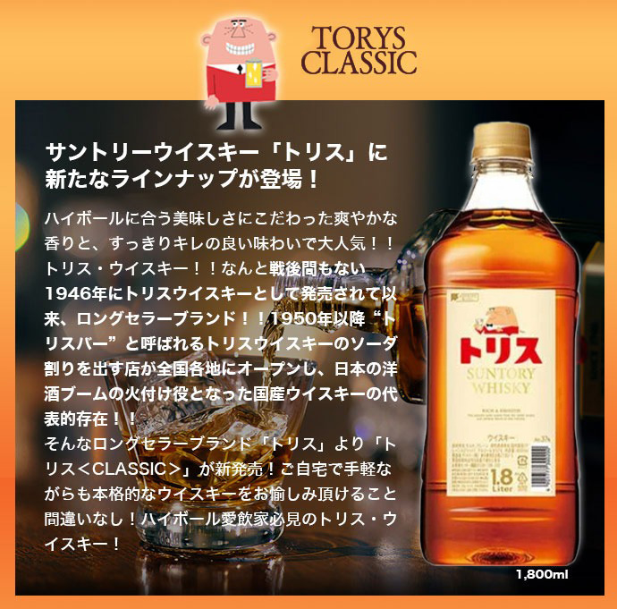 サントリーウイスキー トリス 〈クラシック〉 37% 1800ml ペットボトル (ブレンデッドウイスキー)