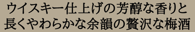 ウイスキーの染み込んだ古樽を、じっくりと時間をかけて焙煎。樽由来の心地よい木香と焙煎樽ならではの甘やかなバニラ香をまとい、フレッシュな梅酒が華やかで深い味わいをもつ梅酒に生まれ変わります。