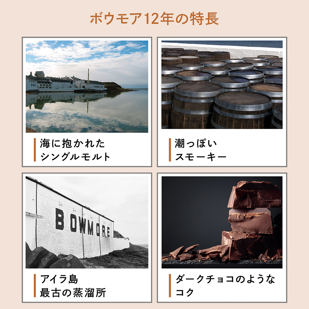 【箱入 木製コースター兼小皿付 正規品】ボウモア 12年 シングルモルトの歩き方 アイラ シングル モルト スコッチ ウイスキー whisky_YBW12 送料無料