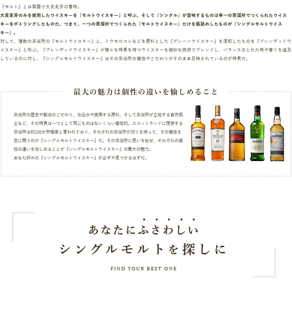 ![]() カモメが舞う浜辺200有余年 1779年、アイラ島の浜辺に誕生したボウモア蒸留所。以来、200有余年、手間がかかる製法を決して変えない職人たちが黙々と仕事を続けています。その昔、この荒涼たる孤島でのウイスキー造りは輸送が大変でした。しかし、島の男たちが磨き上げてきた伝統の技の納品には、それだけの確かな個性がありました。早くも18世紀にはボウモア村のウイスキーは「豊かで洗練された品質」というキャッチフレーズとともに英国全土に知れ渡っていたのです。 ![]() 昔ながらのフロア式モルティング ボウモア蒸留所は、いまも昔ながらのフロアモルティング。発芽室のフロアに水をたっぷり吸った大麦が広げられ、ときおり職人がスコップで麦をひっくり返しながら、ボウモア専用の麦芽がつくられます。 ほどよく発芽した麦芽は、キルンという乾燥塔で熱風乾燥。このとき量やタイミングに格別の注目を払いながら焚きしめるピートの焙香が、アイラ特有のスモーキーフレーバーとなります。 ![]() 海抜ゼロメートルの蒸留所 スコットランド西南、大西洋に浮かぶ小さな島、アイラ島。そのアイラ島の南から中央まで切り込んだ深い入り江の中ほどに立つボウモア蒸留所。村の家並みも人々の暮らしも、昔のまま。貯蔵庫に打ち寄せる波しぶき、ピートに染み込む潮風。湿原には、春になると蒸留所の男たちが切り出すピートが多くス推積しています。この独特の風土が、アイラ島産のモルトウイスキーにスモーキーフレーバーのよくきいた強烈な個性を育んでくれるのです。 |
