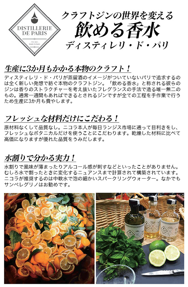 ![]() ディスティレリ ド パリ シングル モルト ウイスキー ■アルコール度数:500ml ■内容量:43% パリで蒸留された初めてのウイスキー!! ブロンド、スモーク、ピートなど選び抜かれた複数のモルトの 風味を活かすことを大前提にアーノルド ・ ホルスタイン製カス タムメイドの蒸留器を使って蒸留される新しいスタイルのウイスキー!! 穀物の風味、軽い葉巻、燻製香やピートのタッチと柑橘系果実の風味!!凝縮感に溢れ、麦芽本来の風味に ほのかなピートやスパイシーさが感じられる!!力強く複雑ながら、まろやかさも兼ね備えた至極の逸品!! 300時間に及ぶ長い醗酵で美しく複雑なアロマを得る!!ライトな口当たりに確かな香りと骨格、フレッシュな余韻に満ちたオリジナルスタイル!! 食後酒としては、時にフロマージュと、シガーと、またはショコラとともに、美食の余韻を遮ることなくゆっくりとした食後のひと時を演出!! ぜひ一度、ご賞味ください!! |