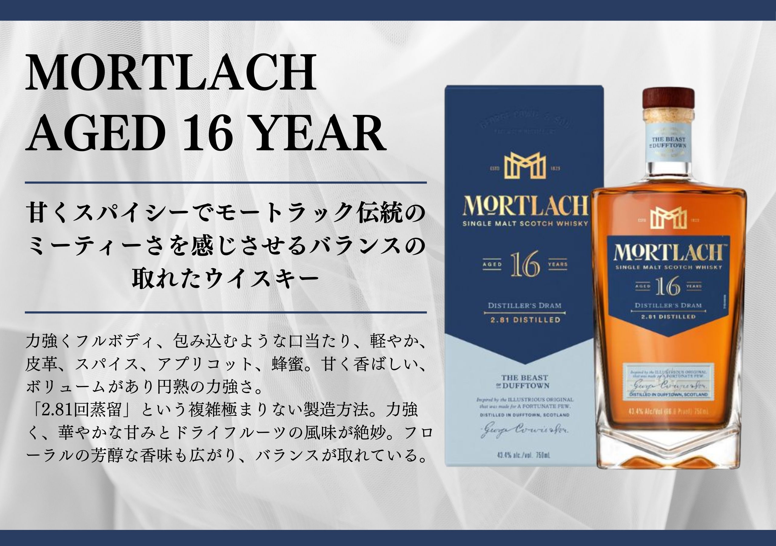 その芳醇でパワフルな味わいからウイスキー通によって「ダフタウンの野獣(Beast of Dufftown)」と絶賛され続けています。 1823年創業、ダフタウンの7つの蒸留所の中で、第二次世界大戦中も操業を許可された唯一の蒸留所です。1887年にグレンフィディックができるまでは、ダフタウン唯一の蒸留所でした。モートラックとはゲール語で、「椀状のくぼ地」を意味します。 | ![]() ■度数:43.4% ■内容量:700ml 1823年創業!!ジョニー・ウォーカーの原酒としても有名でダフタウンの蒸留所の中で第二次世界大戦中も操業を唯一許可され、ゲール語で“椀上のくぼみ”という意味の大人気蒸留所! 包み込むような口当たり、軽やか、皮革、スパイス、アプリコット、蜂蜜のような甘さとスパイシーさがバランスよく感じられます!!フィニッシュは16年間の熟成期間を感じさせるドライフルーツのような余韻が長く続くシングルモルトウイスキー!! |