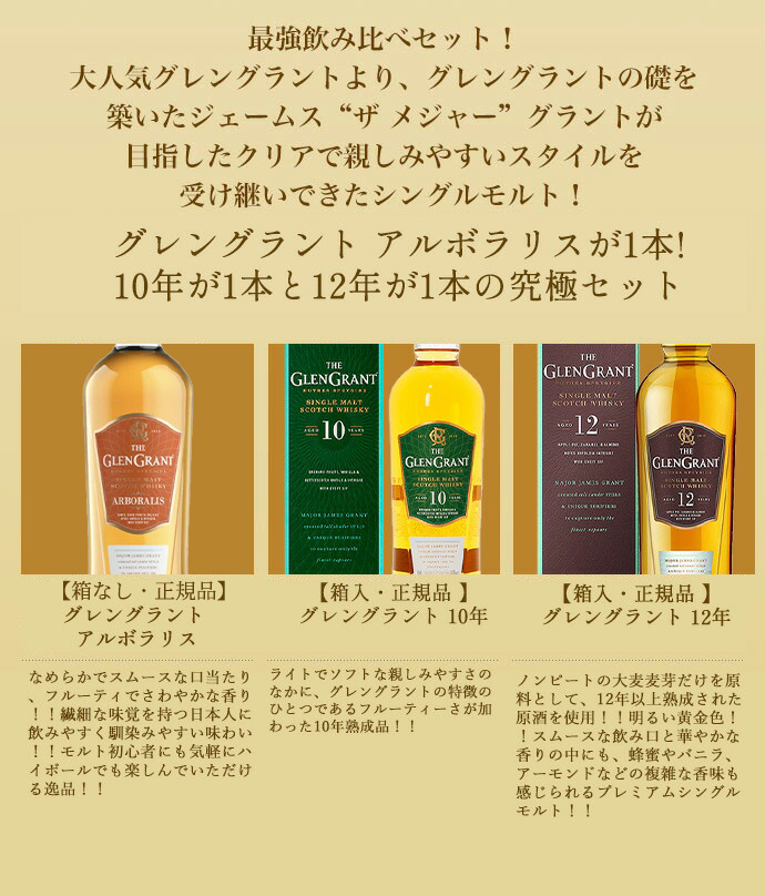 【送料無料】【箱 正規品】グレングラント3種飲み比べセット アルボラリス 10年 12年 シングル モルト スコッチ ウイスキー 700ml×3本<br>GLENGRANT ARBORALIS AGED10YEAR AGED12YEAR SPEYSIDE