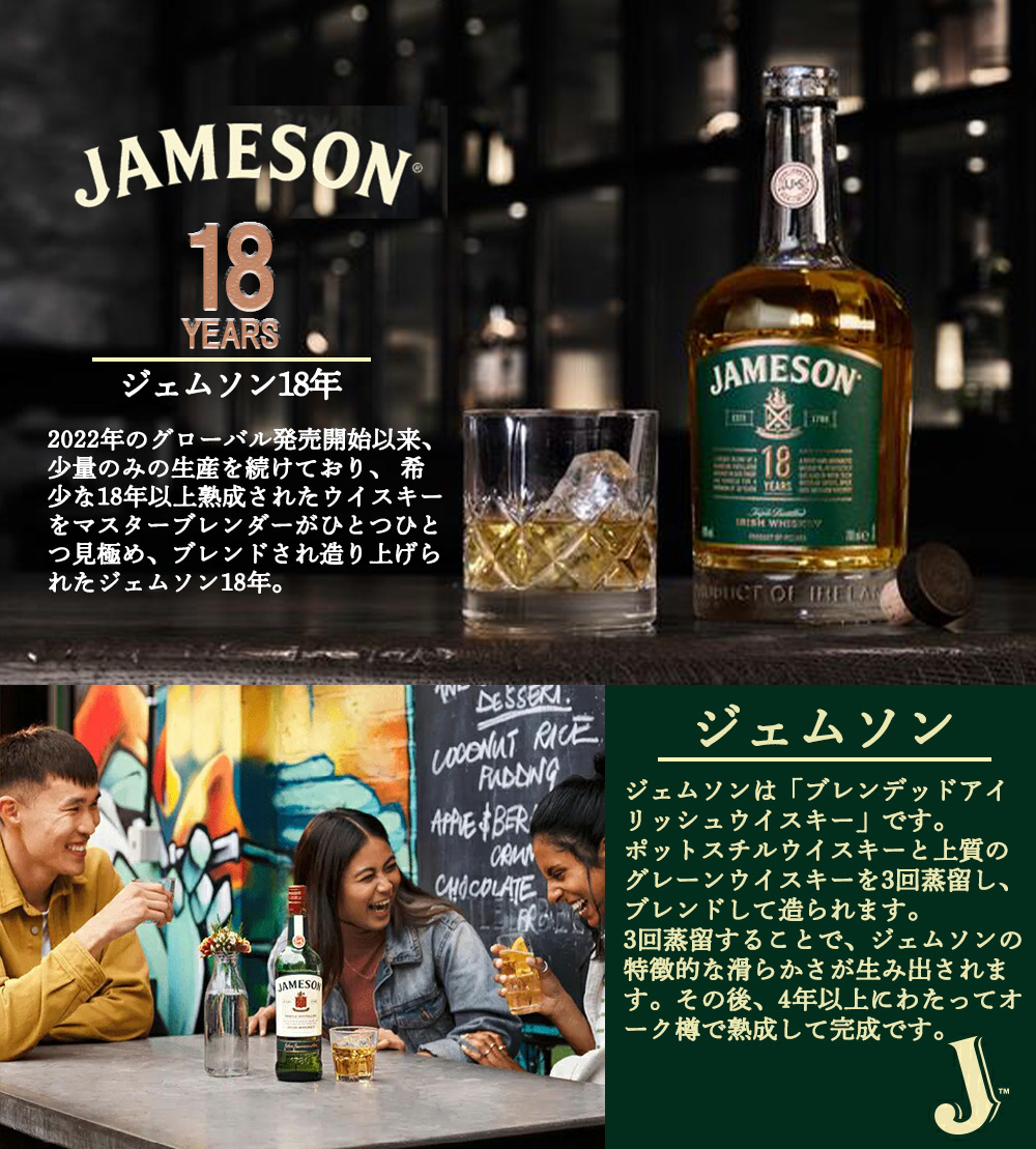 【正規品 箱入】ジェムソン 18 年 アイリッシュ ウイスキー 700ml 46%<br>JAMESON AGED 18 YEAR IRISH WHISKY 700ml 46%