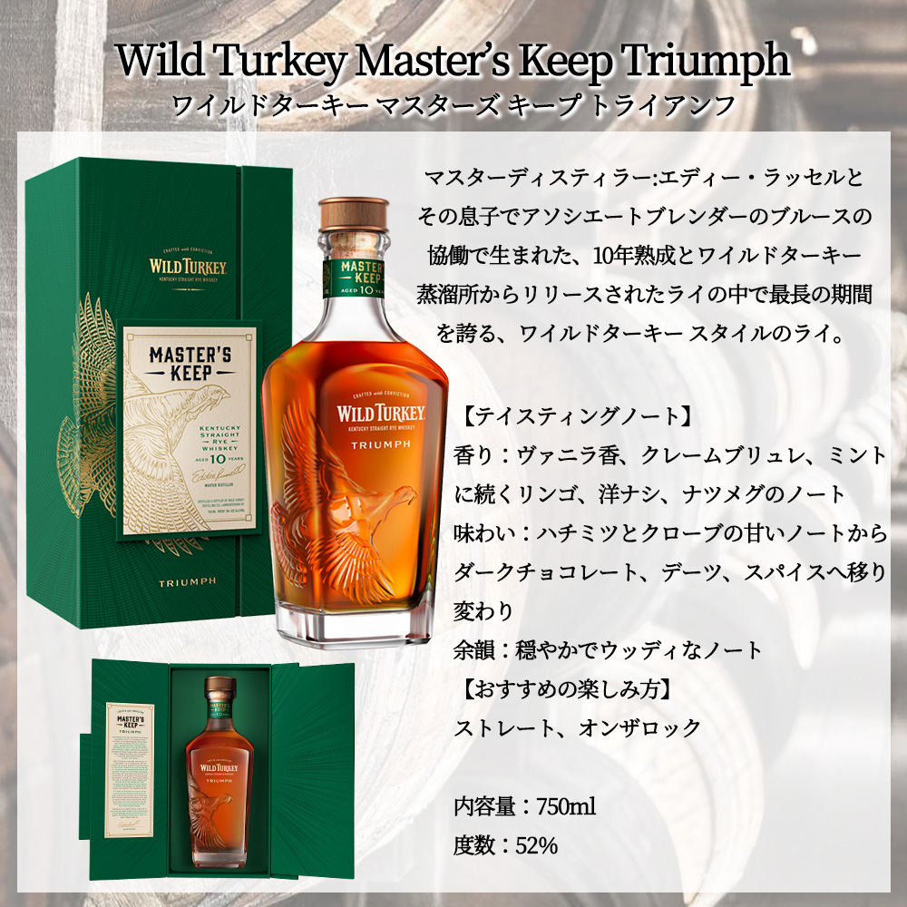 【商品名】【正規品・箱入】ワイルドターキー・マスターズ・キープ・トライアンフ・ケンターキー・ストレート・ライ・ウイスキー・750ml・52%【英名】WILD TURKEY MASTER'S KEEP TRIUMPH KENTUCKY STRAIGHT RYE WHISKEY 750ml 52%