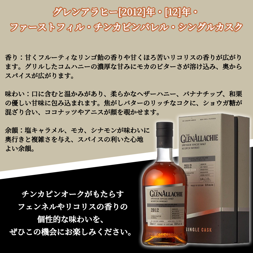 【正規品 箱入】グレンアラヒー 2012年 12年 ファーストフィル チンカピンバレル シングルカスク 700ml 60.6% GLENALLACHIE DISTILLED 2012 AGED 12 YEAR CHINQUAPINBARREL