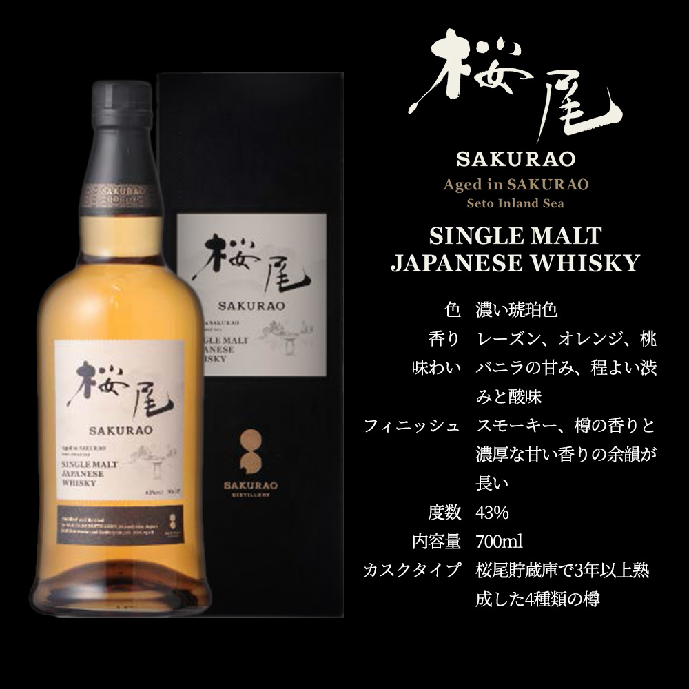 【正規品 箱入】桜尾 シングル モルト ジャパニーズ ウイスキー 700ml 43% SAKURAO SINGLE MALT JAPANESE WHISKY 700ml 43%
