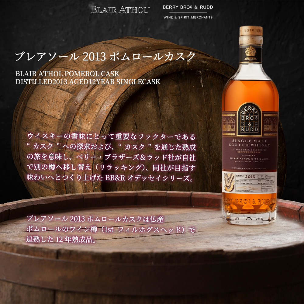 【正規品】ブレアソール ポムロールカスク 2013年 12年 シングルカスク ハイランド シングル モルト スコッチ ウイスキー ベリー ブラザーズ&ラッド社 700ml 57.3% BLAIR ATHOL POMEROL CASK DISTILLED2013 AGED12YEAR