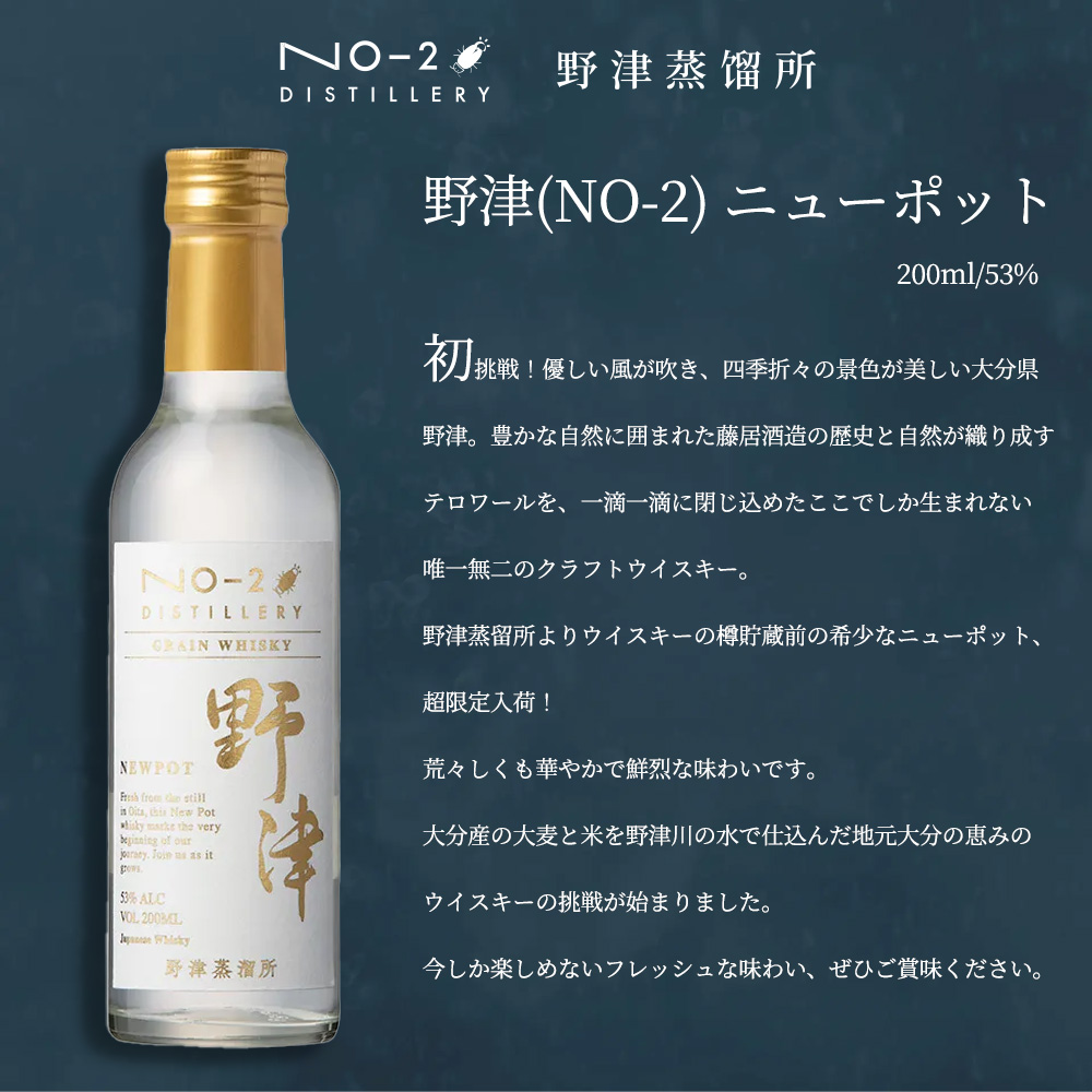 【正規品 クリアケース入り】野津(NO-2) ニューポット グレーン ウイスキー 藤居酒造 野津蒸留所 200ml 53% NO-2 NEWPOT CRAIN WHISKY 200ml 53%