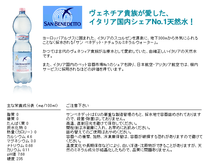 サンベネデット ナチュラル ミネラルウォーター 1500ml PET