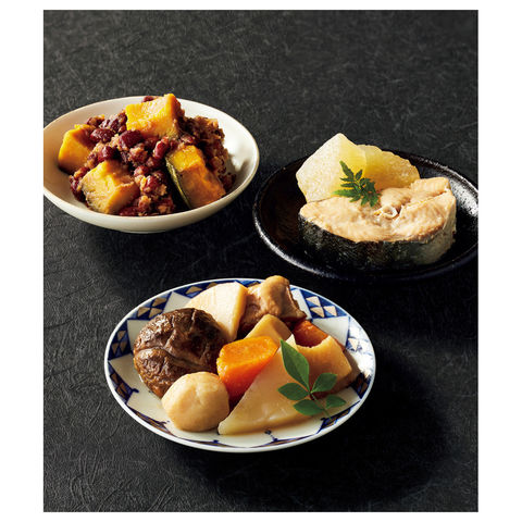 | 内容 | たけのこ土佐煮55g・筑前煮65g・ひじき炒め煮65g・五目豆ひじき入り70g・かぼちゃのいとこ煮80g・鮭だいこん90g×各1、そぼろ大根100g×2/プルトップ缶 |