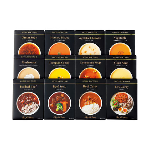 | 内容 | つぶ入りコーンスープ・パンプキンクリームスープ・10種野菜のクリームスープ・野菜のチャウダー・オニオンスープ・国産マッシュルームのクリームスープ・オマール海老のビスク・コンソメスープ・ドライカレー各150g、ビーフカレー・ハッシュドビーフ・ビーフシチュー各180g/原産国:日本、アメリカ、他 |