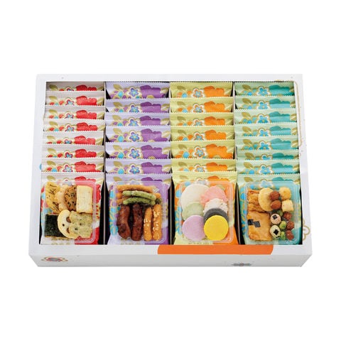 | 内容 | あられ・おつまみ×各8袋、かりんとう・えびせん×各7袋/原産国:日本・米・カナダ・中国・ベトナム・ミャンマー |