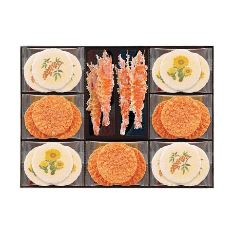 | 内容 | 車えび姿焼き・甘えび姿焼き×各1カップ、赤えび炙り焼き×9袋、南天・福寿草×各6袋/原産国:日本 |