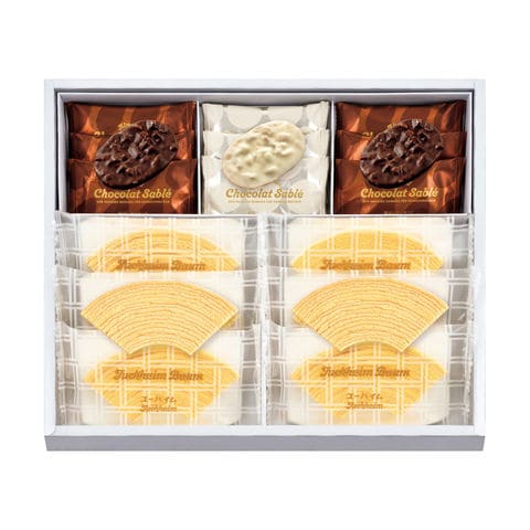 | 内容 | ユーハイムバウム×6、ショコラサブレ(アーモンド×6、マカダミアナッツ×3) |
