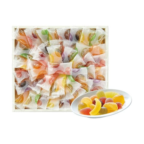 多彩な果実の風味をギュッと詰めた一口サイズのゼリー。一粒一粒がフルーツをかたどった愛らしいカタチは贈られた方の笑顔を誘います。