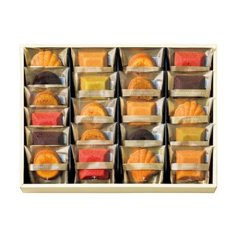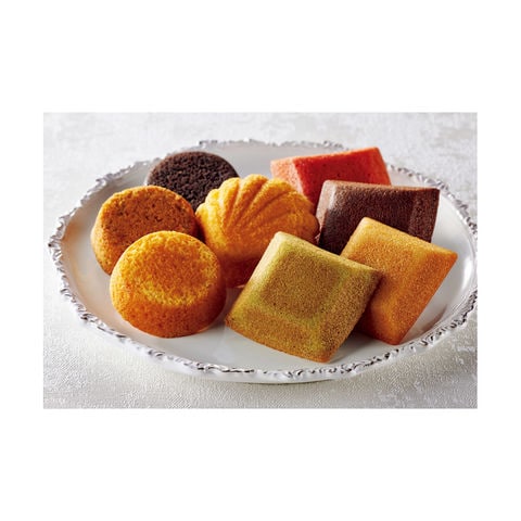 | 内容 | マドレーヌ・メープルアーモンドケーキ・いちごバターケーキ・フィナンシェ・りんごバターケーキ×各3、チョコオレンジケーキ・フィナンシェショコラ・フィナンシェピスタチオ×各2/原産国:日本、米国、フランス、他 |