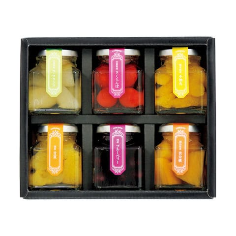 | 内容 | コンポート(熊本県産不知火・山形県産ラ フランス・岡山県産黄金桃・国産ブルーベリー・国産甘夏各55g、山形県産さくらんぼ35g)/原産国:山形・茨城・埼玉・愛媛・熊本・岡山 |