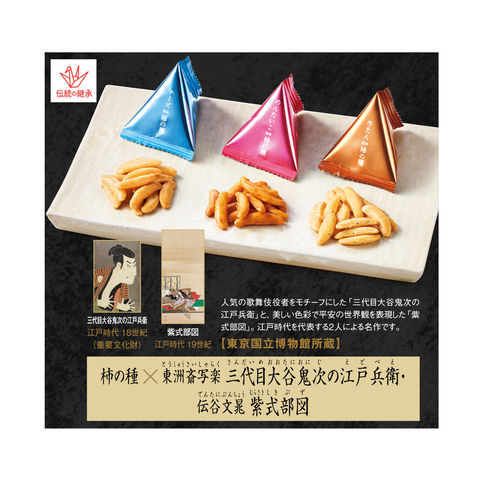 【伊勢丹のお歳暮(エコ包装)】東京国立博物館 限定ギフト 三代目大谷鬼次の江戸兵衛・紫式部図 柿の種詰合せ