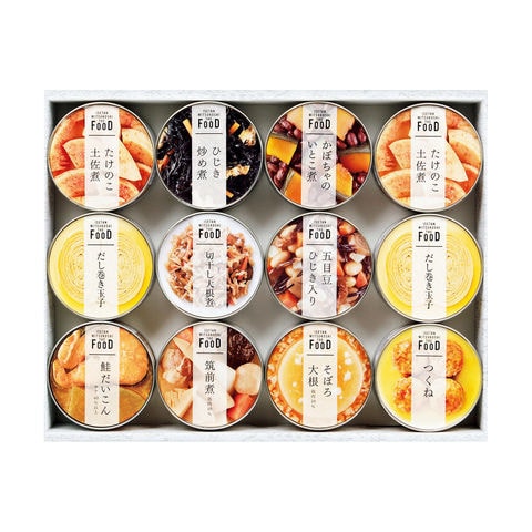 | 内容 | つくね50g・ひじき炒め煮65g・切干し大根煮65g・五目豆ひじき入り70g・筑前煮65g・かぼちゃのいとこ煮80g・鮭だいこん90g・そぼろ大根100g×各1、たけのこ土佐煮55g・だし巻き玉子90g×各2/プルトップ缶/賞味期間:常温で1095日 |