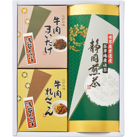 浅草今半・愛国製茶 牛肉佃煮・静岡煎茶詰合せ
