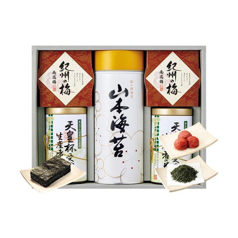 山本海苔店・愛国製茶 焼海苔・銘茶・梅干詰合せ【三越の手土産】
