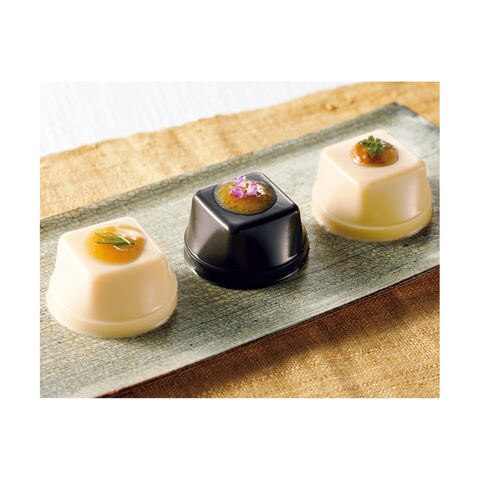 香り高い練り胡麻と吉野葛を使用し、もっちりとした食感に仕上げた一口サイズの胡麻豆腐です。2種のこだわりのたれと、お好みの組合せでご賞味ください。