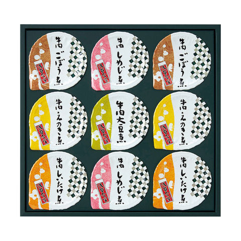 | 内容 | 牛肉大豆煮40g×1、牛肉ごぼう煮35g・牛肉えのき煮45g・牛肉しいたけ煮35g・牛肉しめじ煮40g×各2/賞味期間:常温で270日/原産国:国産 |